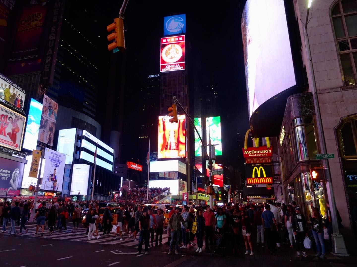 We decided to waste no time at all and on our first night ventured out to see what all the fuss was about! The square was a very different place to what I had seen during the day, every store sign was now glowing an array of different colours, despite the sky being pitch black it was brighter than ever out there. I was surrounded by the many screens Times Square is famous for all displaying different ads, entertainers dressed as Elsa, Spiderman and even the Statue Of Liberty roaming the streets ready to put on a show and horse drawn carriage drivers zipping around taking their passengers to every inch of the city.